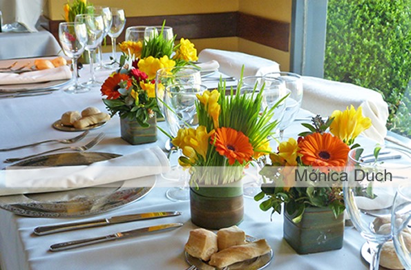 Sorprendimos con mini jardines floridos de vivos colores, que poblaron las mesas de los invitados, mesa principal y rincones primaverales atractivos.