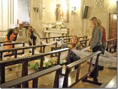 Un largo pasillo hasta el altar, enmarcado de tules y flores en todos los bancos! Romanticismo total!